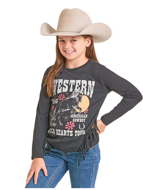 Girl's Wild Hearts Long Sleeve Tee with Fringe