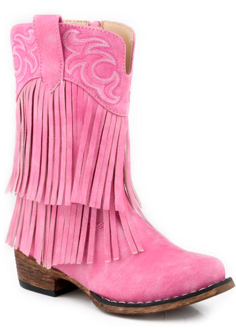 Roper Cowbabies Girls Pink Fringe Boots