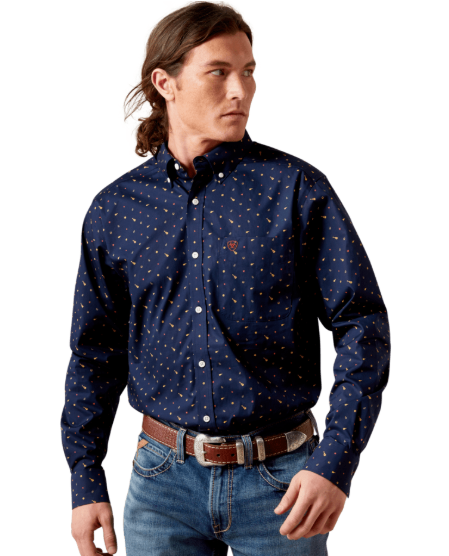 Ariat Men's Beaux Fitted Long Sleeve Navy Shirt
