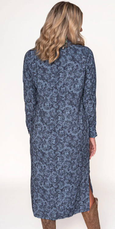 Boots may do the walking, but this dress does the talking. A Western fashionista’s dream, adorned with beautiful pearl snap buttons all down the front, with side slits and - of course - pockets. A timeless design that makes a bold statement in both comfort and style.